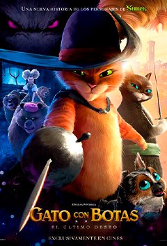 Secuela de El gato con botas (2011). El Gato con Botas descubre que su pasión por la aventura le ha pasado factura ha consumido ocho de sus nueve vidas, por ello emprende un viaje épico para encontrar el mítico Ultimo Deseo y restaurar sus nueve vidas.